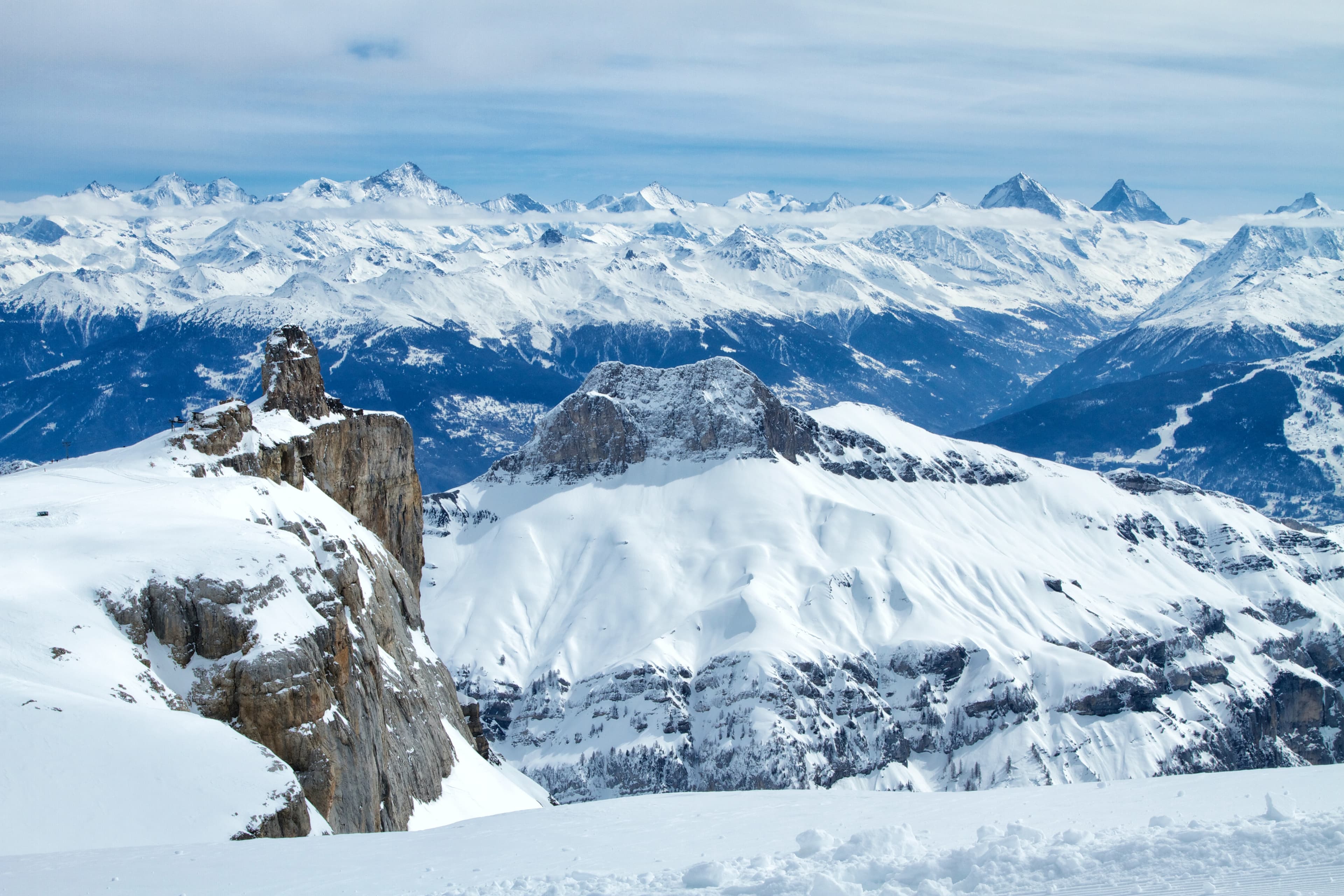 Today, it’s home to high-altitude glacier skiing up to 3,100m, 125km of mostly intermediate pistes, and panoramic views of the surrounding lake and high mountains of the alps. It’s also well connected to the cities of Lausanne and Geneva.